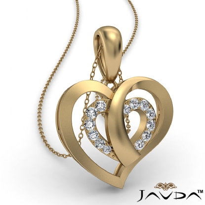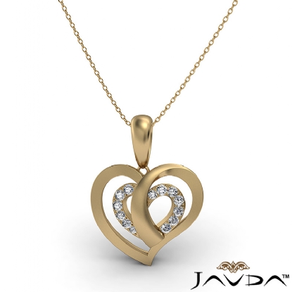 Overlay diamond heart pendant necklace made in 14k Gold Yellow. Features a polished heart overlapping a diamond heart round diamonds beautifuly set in a micro pave setting.