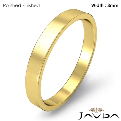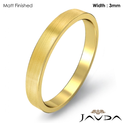 3 gram Men's 18k Gold Yellow Solid Wedding Band. Flat style band. Ring Size is 4". Width is 3mm. Available in high polish and matt finish.