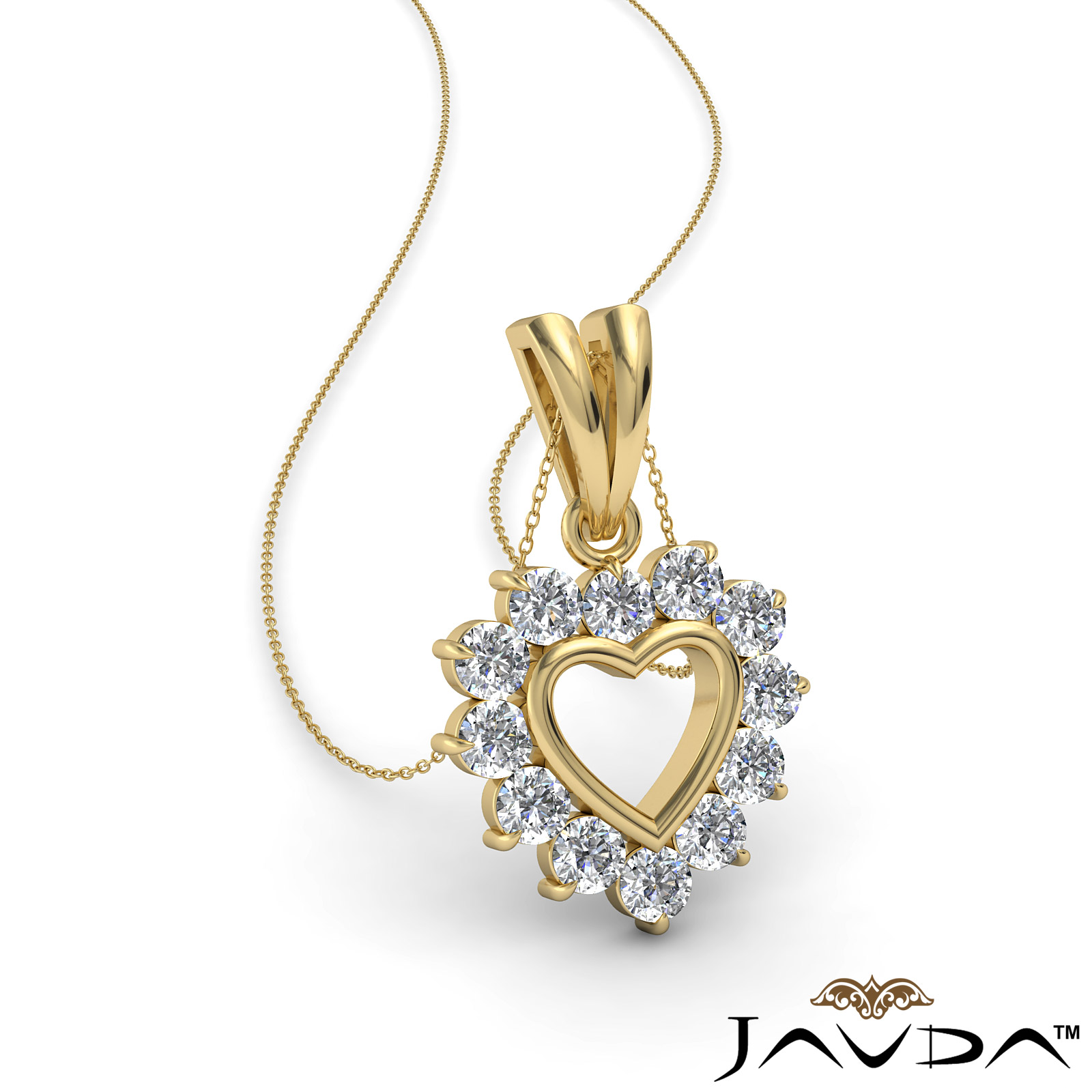 Unforgettable open heart double bail pendant necklace made in 14k Gold Yellow. This magical design features brilliant round cut diamonds set in a claw prong setting, with a glistening polished finish double bail.