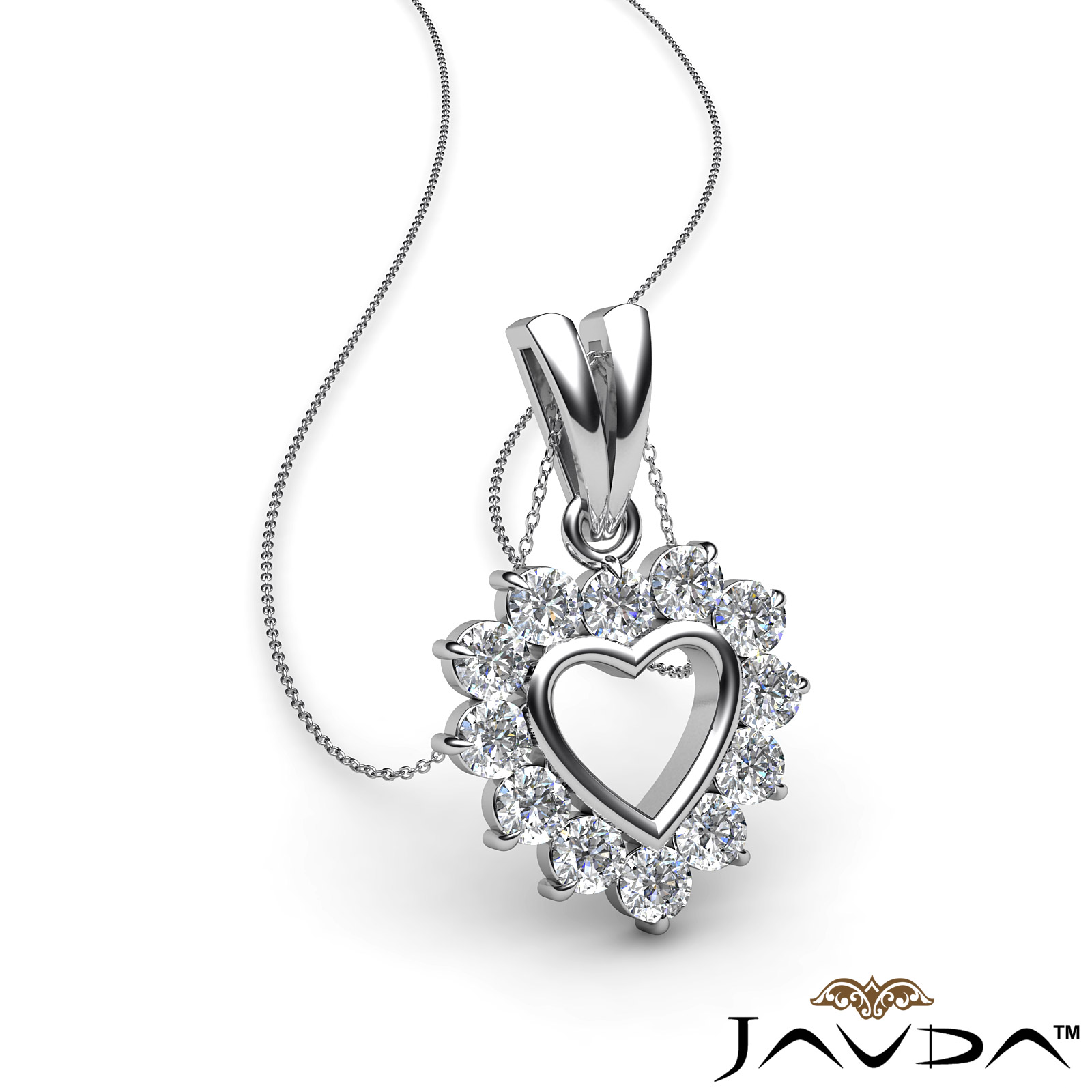 Unforgettable open heart double bail pendant necklace made in 18k Gold White. This magical design features brilliant round cut diamonds set in a claw prong setting, with a glistening polished finish double bail.