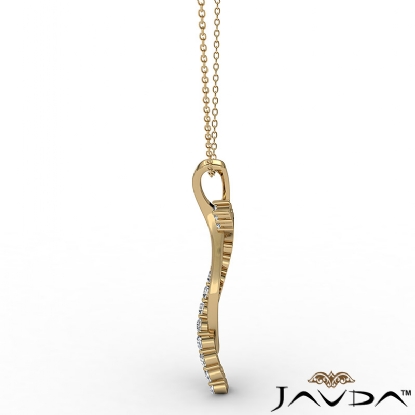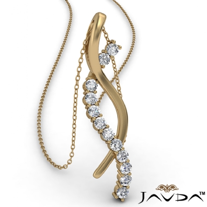 A stunning twisted ribbon diamond pendant necklace made in 14k Gold Yellow. This striking pendant design features round diamond in a prong setting diamond lined ribbons twisting with polished ribbons.