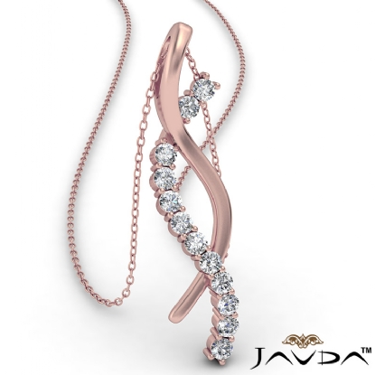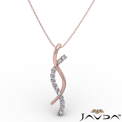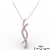 A stunning twisted ribbon diamond pendant necklace made in 14k Rose Gold. This striking pendant design features round diamond in a prong setting diamond lined ribbons twisting with polished ribbons.