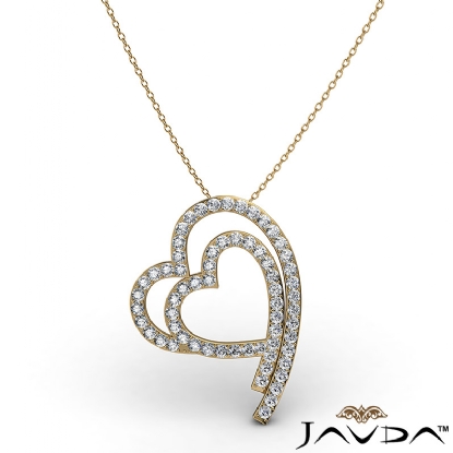 Shadowed Double Heart Diamond Pendant Necklace 14k Gold (0.64Ct. tw.)
