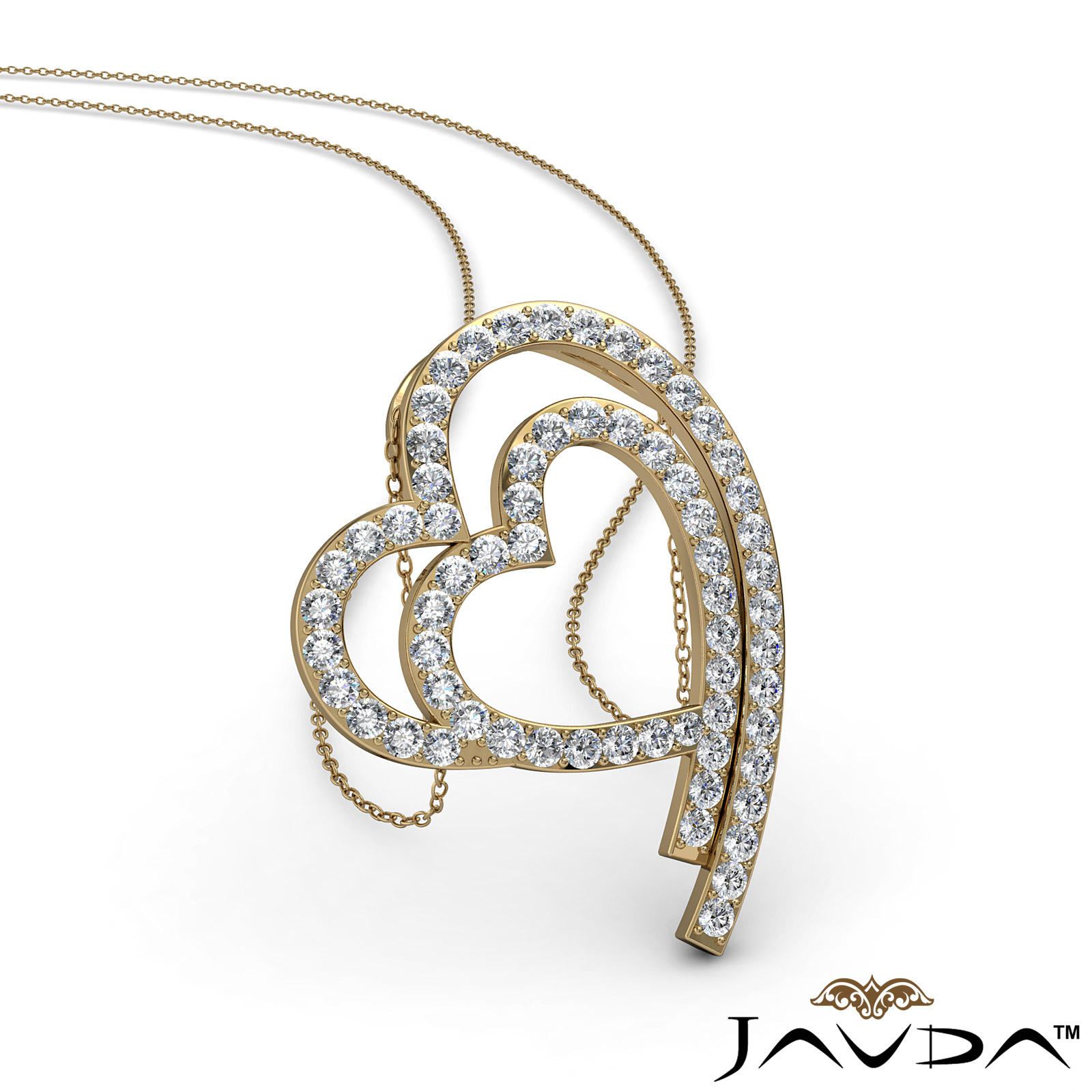Shadowed Double Heart Diamond Pendant Necklace 18k Gold (0.64Ct. tw.)