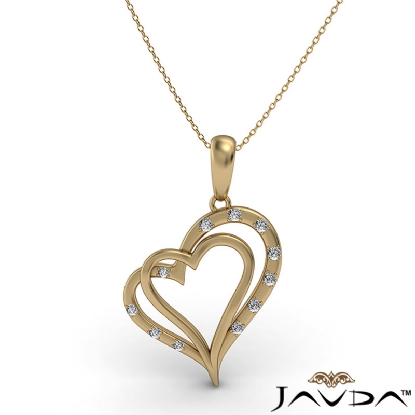 Adorable two heart diamond pendant necklace crafted in 14k Gold Yellow. This heart pendant showcases round diamonds in a micro pave setting.