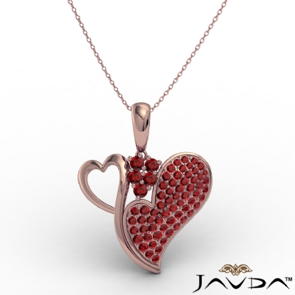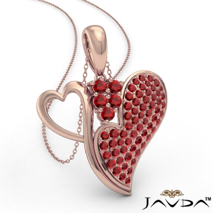 Round Ruby Gemstone Double Heart Pendant Necklace 14k Rose Gold (0Ct. tw.)