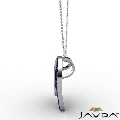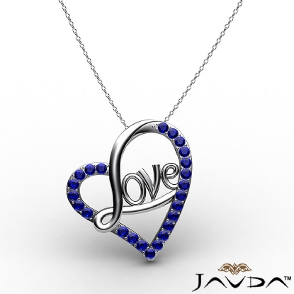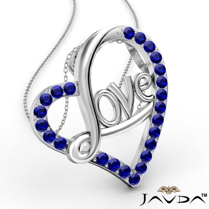 Love Script Heart Pendant Necklace Round Sapphire Gemstone Platinum (0Ct. tw.)
