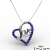 A charm Love script heart pendant necklace accented with tiny round shape diamonds on heart crafted in Platinum 950. Sparkling round sapphire gemstone are elegantly set in micro pave setting, available in 14k, 18k white, yellow, rose gold and platinum 950.