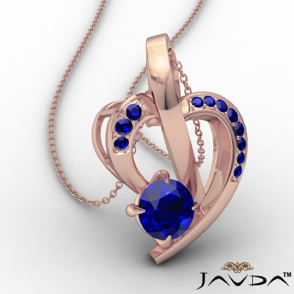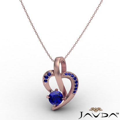 Round Sapphire Gemstone Accent Heart Pendant Necklace 18k Rose Gold (0Ct. tw.)