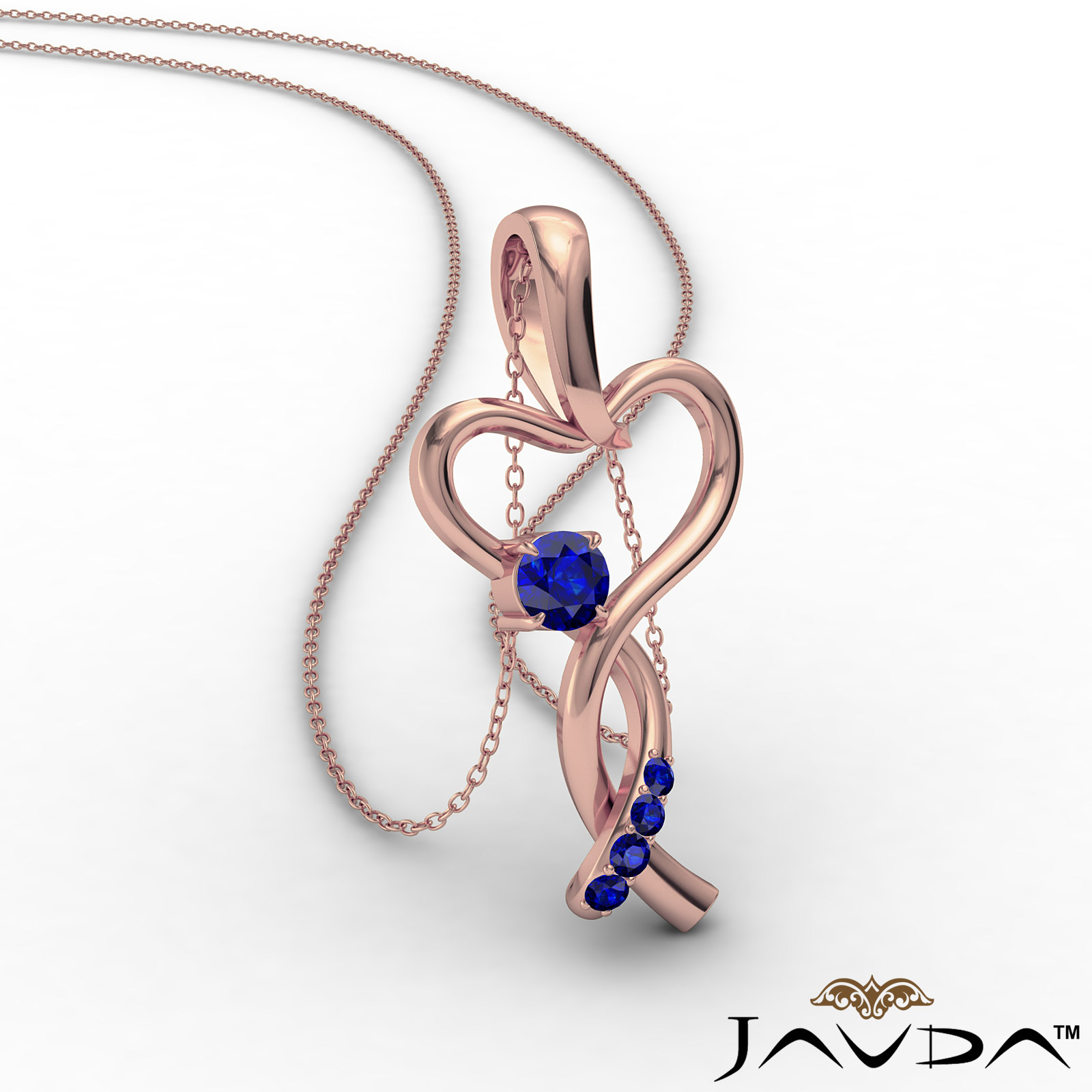 Infinity Heart Pendant Necklace 18k Rose Gold Round Sapphire Gemstone (0Ct. tw.)
