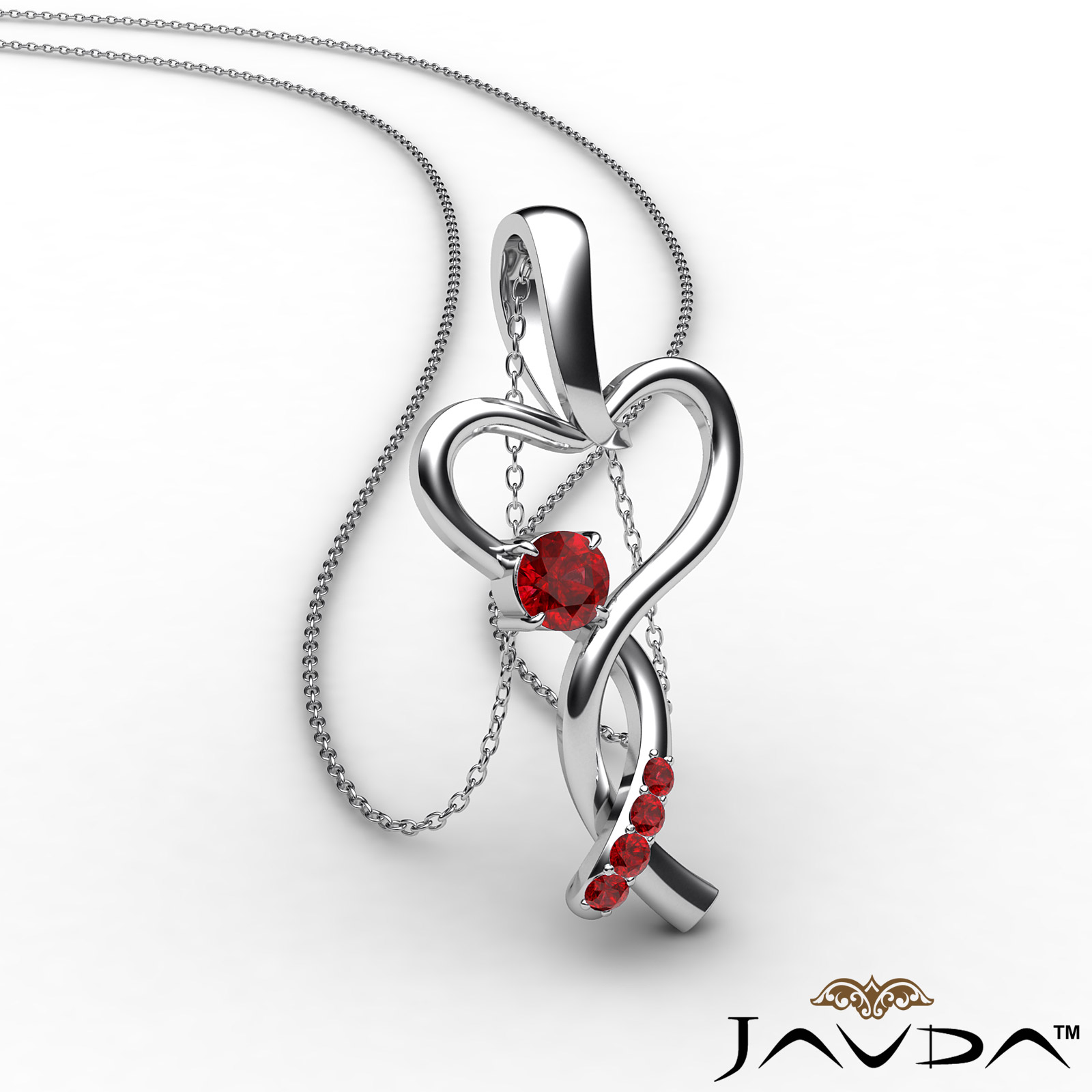 Infinity Heart Pendant Necklace 18k W Gold Round Ruby Gemstone (0Ct. tw.)