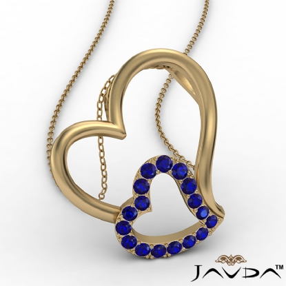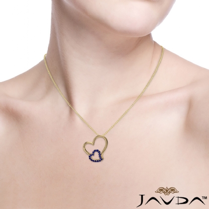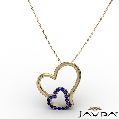 Accent Double Heart Pendant Necklace 14k Gold Round Sapphire Gemstone (0Ct. tw.)