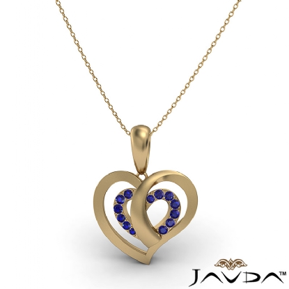 Sapphire gemstone overlay heart pendant necklace made in 18k Gold Yellow. Features a polished heart overlapping a diamond heart round sapphire gemstone beautifuly set in a micro pave setting.