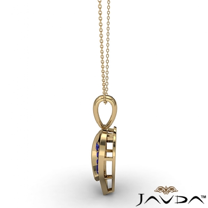 Round Sapphire Gemstone Overlay Heart Pendant Necklace 18k Gold (0Ct. tw.)