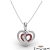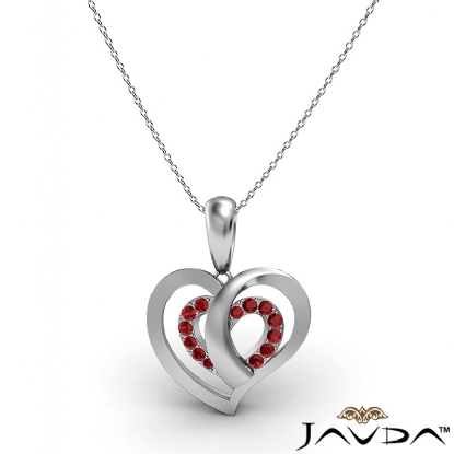 Ruby gemstone overlay heart pendant necklace made in 18k Gold White. Features a polished heart overlapping a diamond heart round ruby gemstone beautifuly set in a micro pave setting.