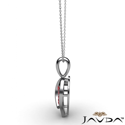 Round Ruby Gemstone Overlay Heart Pendant Necklace 18k W Gold (0Ct. tw.)
