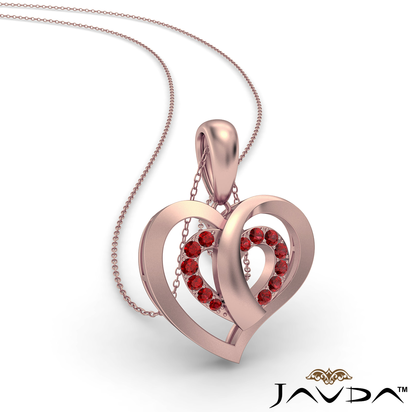 Round Ruby Gemstone Overlay Heart Pendant Necklace 18k Rose Gold (0Ct. tw.)