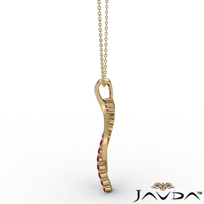 A stunning twisted ribbon ruby gemstone pendant necklace made in 14k Gold Yellow. This striking pendant design features round ruby in a prong setting diamond lined ribbons twisting with polished ribbons.