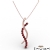 A stunning twisted ribbon ruby gemstone pendant necklace made in 14k Rose Gold. This striking pendant design features round ruby in a prong setting diamond lined ribbons twisting with polished ribbons.
