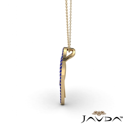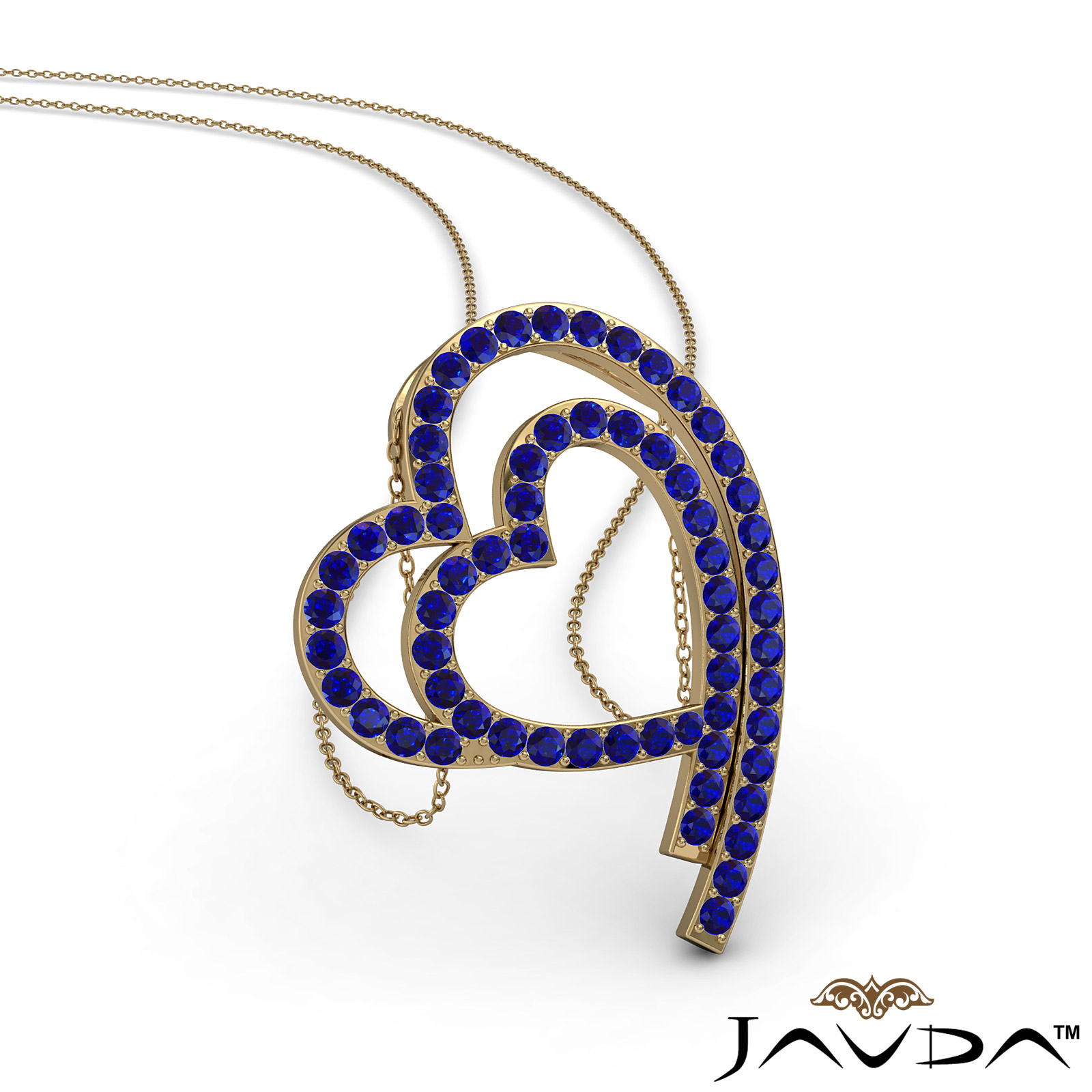 A charming shadowed double heart sapphire gemstone pendant necklace crafted in 18k Gold Yellow. Features double lined heart beautifuly set with round sapphire in a micro pave setting.