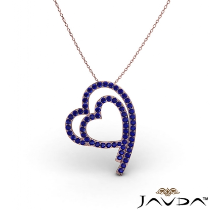 Shadowed Double Heart Sapphire Gemstone Pendant Necklace 14k Rose Gold (0Ct. tw.)