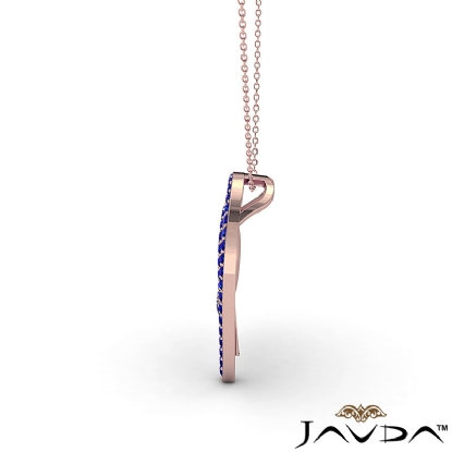 A charming shadowed double heart sapphire gemstone pendant necklace crafted in 14k Rose Gold. Features double lined heart beautifuly set with round sapphire in a micro pave setting.