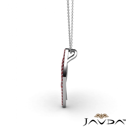 A charming shadowed double heart ruby gemstone pendant necklace crafted in Platinum 950. Features double lined heart beautifuly set with round ruby in a micro pave setting.