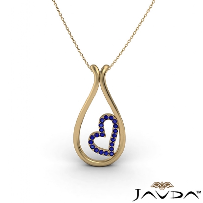 Add a sparkle to your look with dew drop little heart sapphire gemstone pendant necklace crafted in 14k Gold Yellow. This exquisite teardrop style pendant features a tiny heart with round sapphire in a micro pave setting.