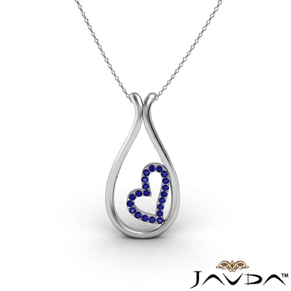 Dew Drop Little Heart Sapphire Gemstone Pendant Necklace Platinum (0Ct. tw.)