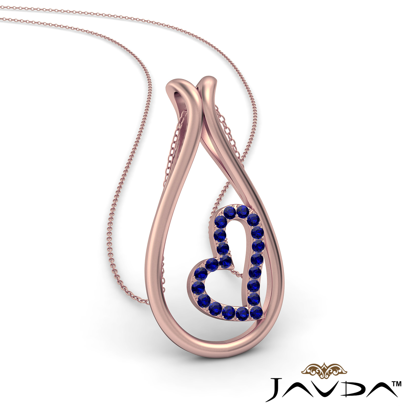 Dew Drop Little Heart Sapphire Gemstone Pendant Necklace 18k Rose Gold (0Ct. tw.)