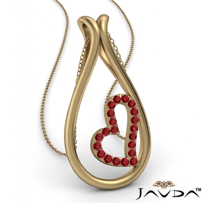 Add a sparkle to your look with dew drop little heart ruby gemstone pendant necklace crafted in 18k Gold Yellow. This exquisite teardrop style pendant features a tiny heart with round ruby in a micro pave setting.