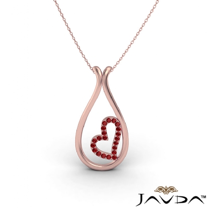 Dew Drop Little Heart Ruby Gemstone Pendant Necklace 18k Rose Gold (0Ct. tw.)