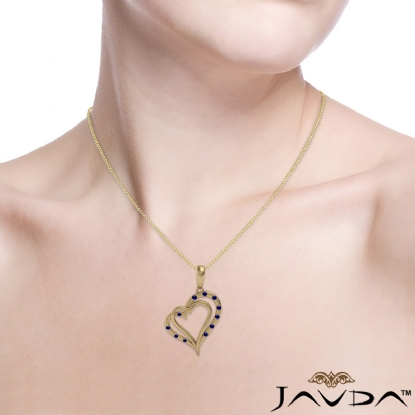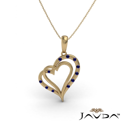 Adorable two heart sapphire gemstone pendant necklace crafted in 18k Gold Yellow. This heart pendant showcases sapphire in a micro pave setting.