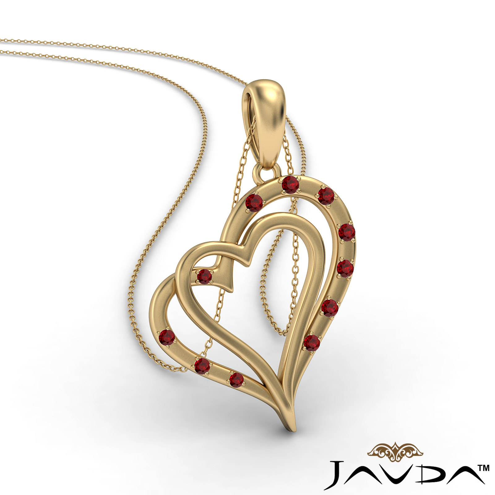 Adorable two heart ruby gemstone pendant necklace crafted in 14k Gold Yellow. This heart pendant showcases ruby in a micro pave setting.
