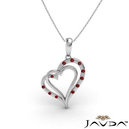 Two Heart Round Ruby Gemstone Pendant Necklace Platinum (0Ct. tw.)