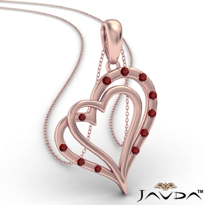Two Heart Round Ruby Gemstone Pendant Necklace 14k Rose Gold (0Ct. tw.)