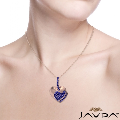 Show your love for her this Valentine's Day, Gemstone filled double heart pendant necklace crafted in 18k Rose Gold. This pretty style features a polished finish heart with round sapphire gemstone in a micro pave setting filled heart.