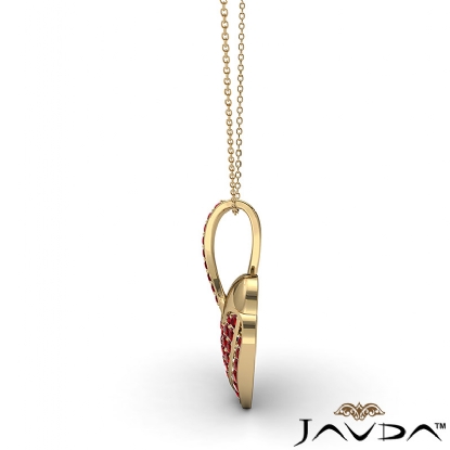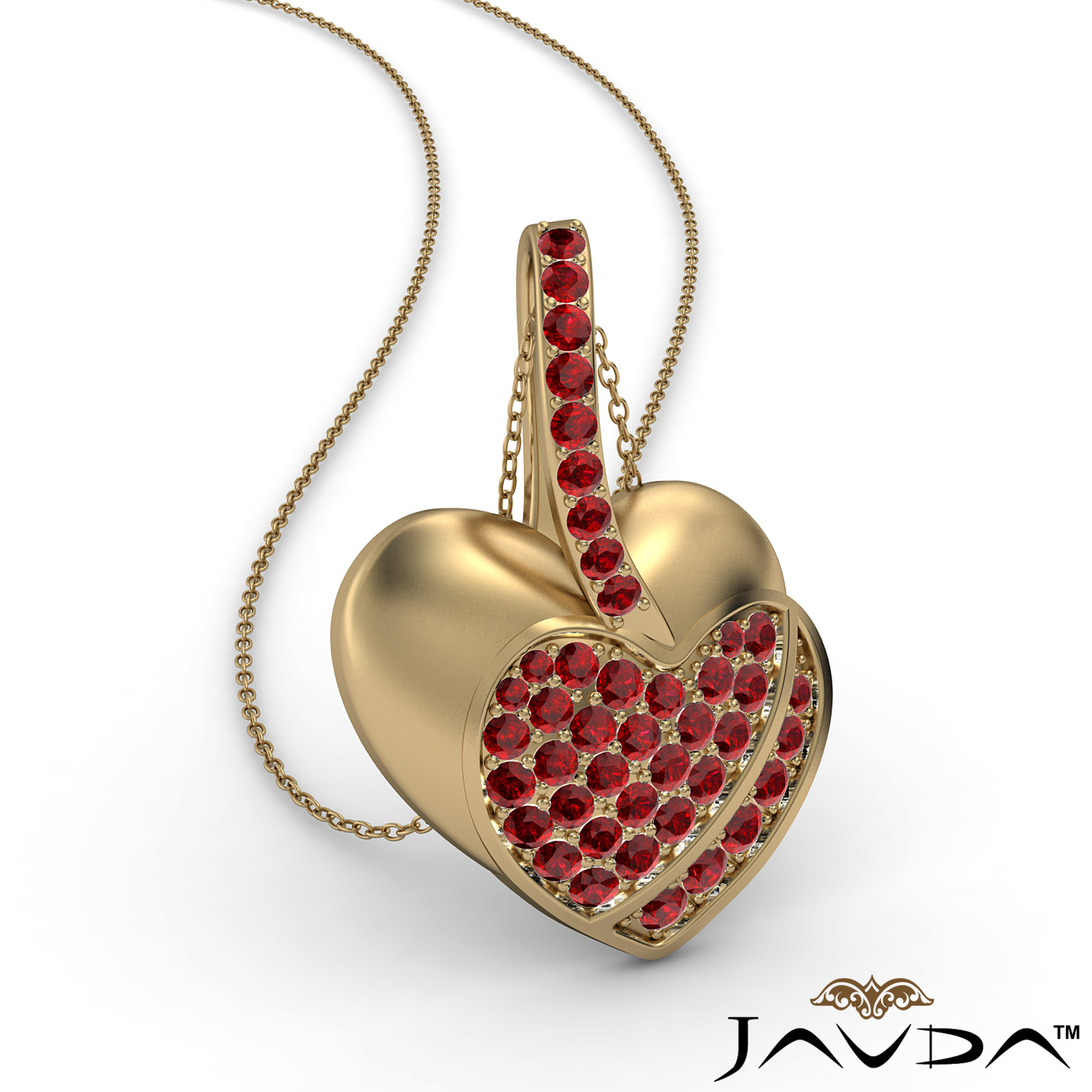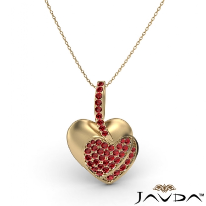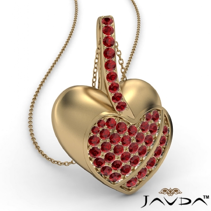 Show your love for her this Valentine's Day, Gemstone filled double heart pendant necklace crafted in 14k Gold Yellow. This pretty style features a polished finish heart with round ruby gemstone in a micro pave setting filled heart.