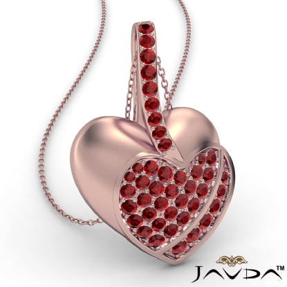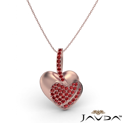 Show your love for her this Valentine's Day, Gemstone filled double heart pendant necklace crafted in 14k Rose Gold. This pretty style features a polished finish heart with round ruby gemstone in a micro pave setting filled heart.