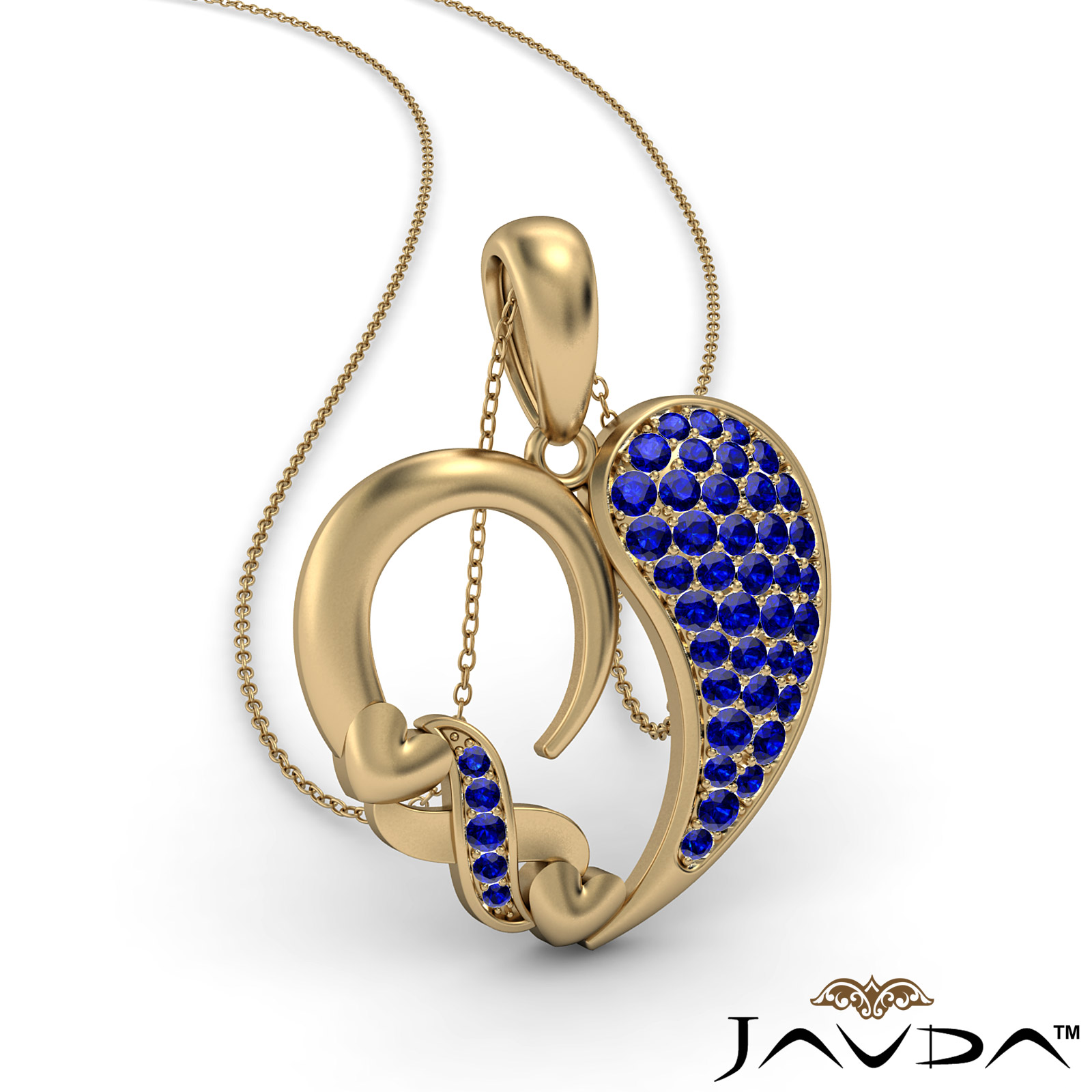 A stylish cluster gemstone XO heart pendant necklace made in precious 14k Gold Yellow. This charming pendant features round sapphire gemstone in a micro pave setting with a beautiful XO pattern on heart edge.