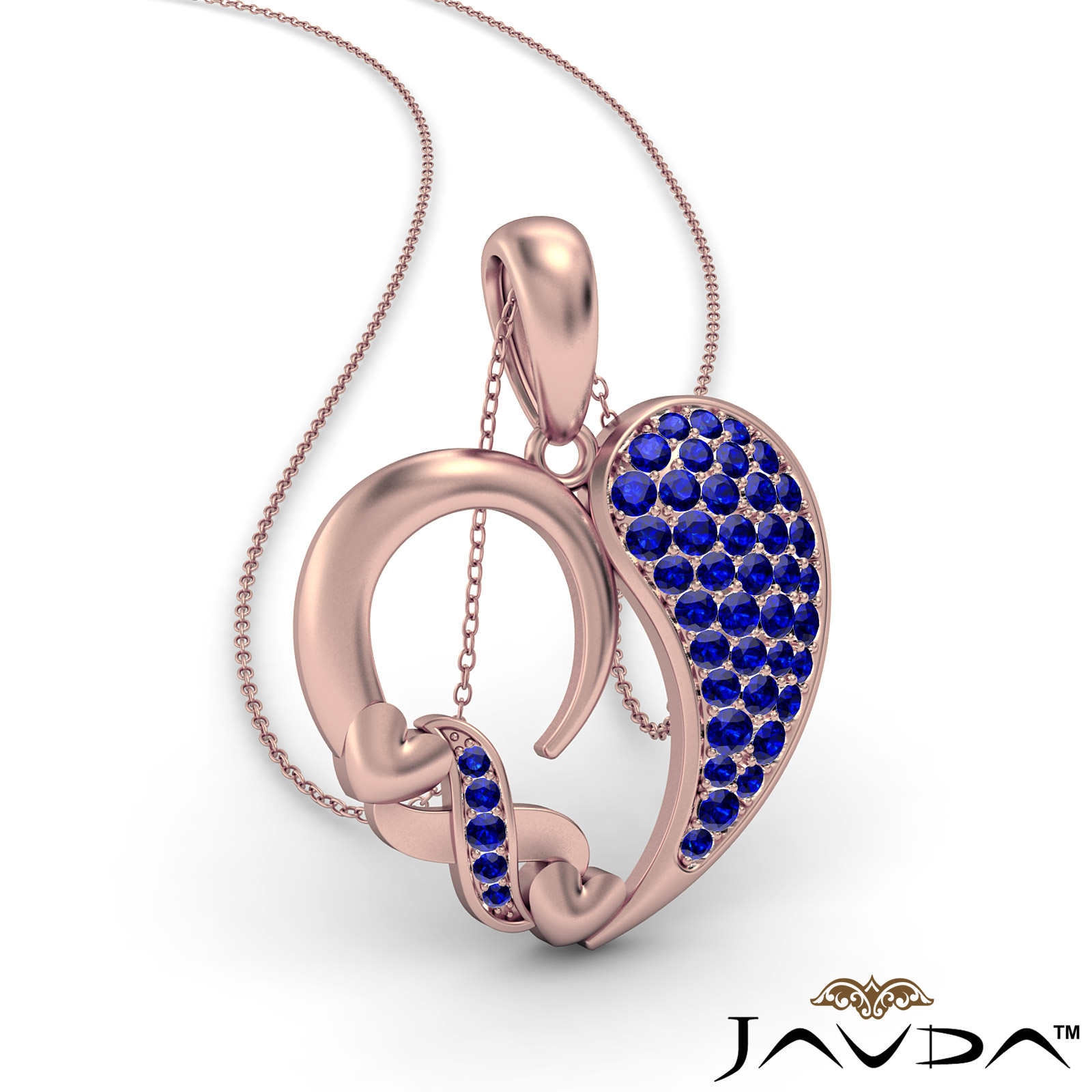A stylish cluster gemstone XO heart pendant necklace made in precious 18k Rose Gold. This charming pendant features round sapphire gemstone in a micro pave setting with a beautiful XO pattern on heart edge.