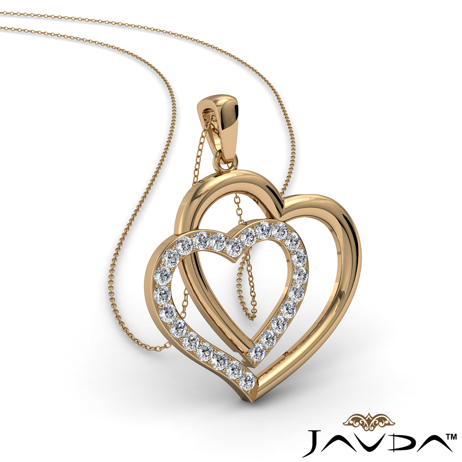 Two Heart Pendant Necklace 18k Gold Round Diamond (0.55Ct. tw.)