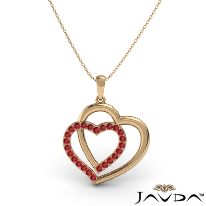Two Heart Pendant Necklace 18k Gold Round Ruby Gemstone (0Ct. tw.)