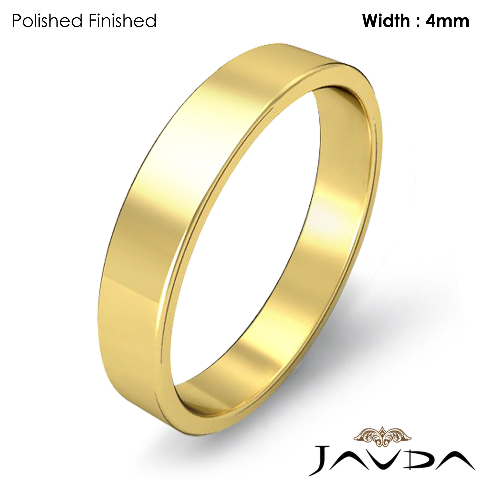 3.4 gram Men's 14k Gold Yellow Solid Wedding Band. Flat style band. Ring Size is 4". Width is 4mm. Available in high polish and matt finish.