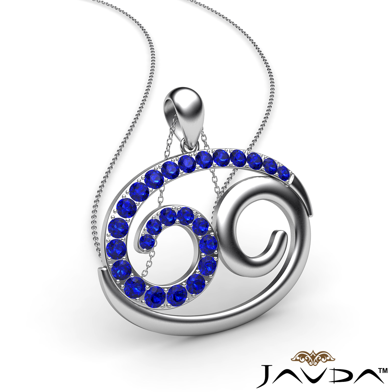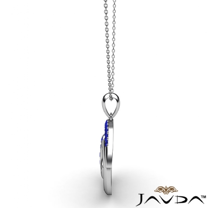 Unique & latest style 69 number pendant necklace crafted in 18k Gold White. This fashionable pendant features round sapphire gemstone in a micro pave setting hang on 18 inch rolo chain that secures with a spring ring clasp.