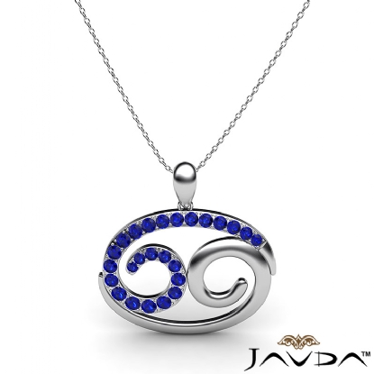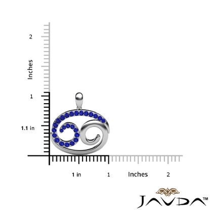 69 Number Pendant 18 Inch Rolo Chain 18k W Gold Round Sapphire Gemstone (0Ct. tw.)