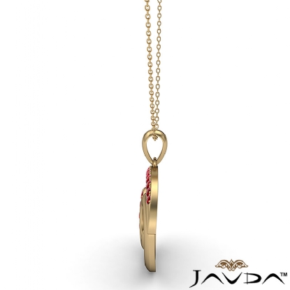 Unique & latest style 69 number pendant necklace crafted in 18k Gold Yellow. This fashionable pendant features round ruby gemstone in a micro pave setting hang on 18 inch rolo chain that secures with a spring ring clasp.