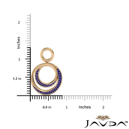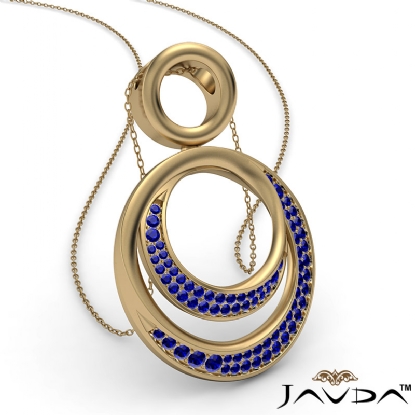 The dazzling double circle pendant necklace crafted in 18k Gold Yellow. Features graduated round sapphire gemstone in a micro pave setting hang with a beautiful 18 inch rolo chain.