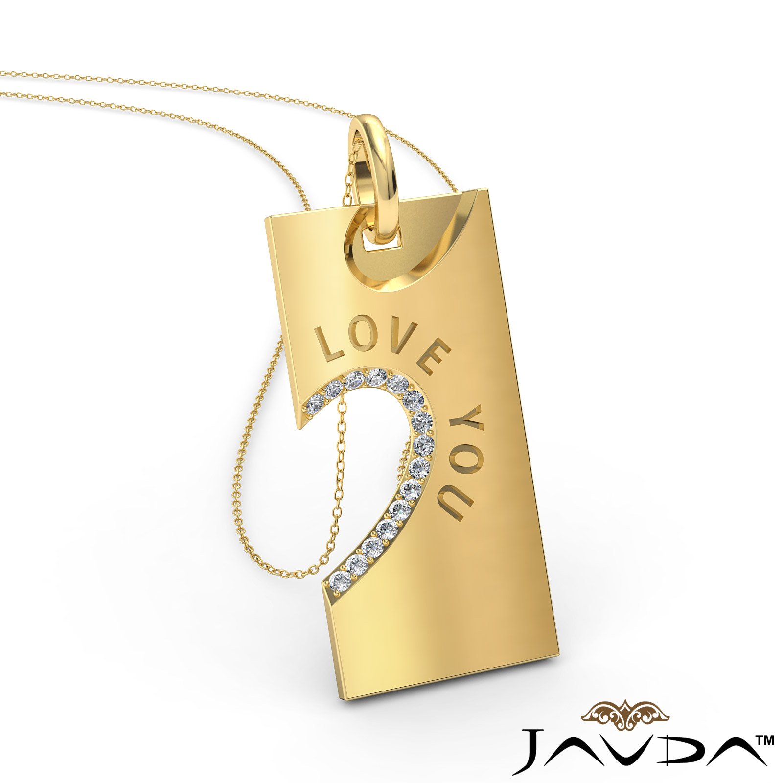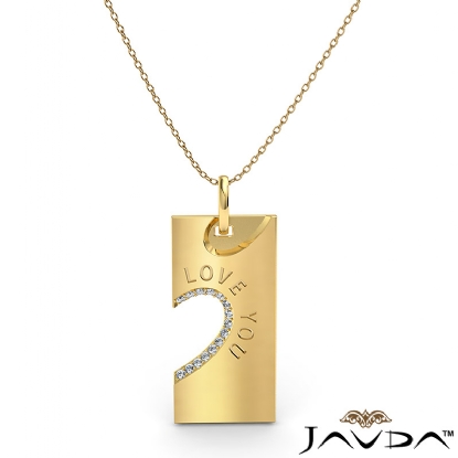 Say I Love You with love you diamond heart pendant necklace made in 18k Gold Yellow. This charm pendant features a round diamonds in a micro pave setting with beautiful engraving of Love You. This pendant hang on 18 inch rolo chain that secures in a polished finish ring clasp.