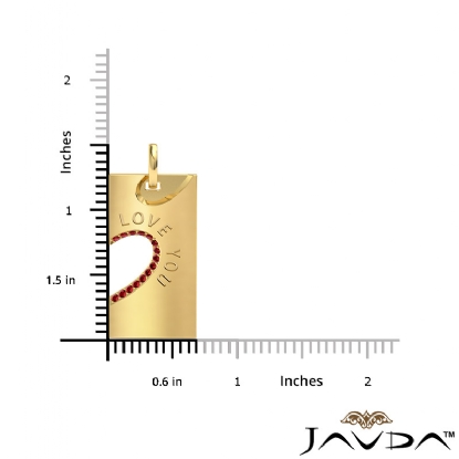 Say I Love You with love you ruby heart pendant necklace made in 14k Gold Yellow. This charm pendant features a round ruby gemstone in a micro pave setting with beautiful engraving of Love You. This pendant hang on 18 inch rolo chain that secures in a polished finish ring clasp.